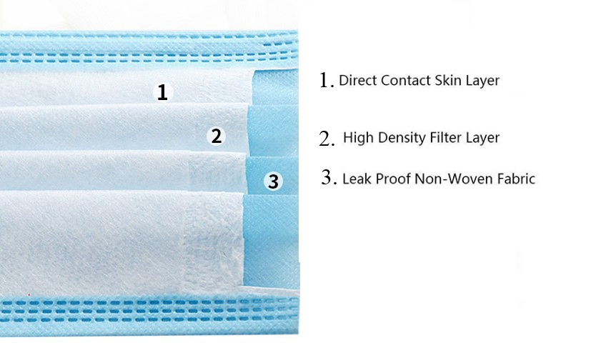 disposable face mask is made of 3-layers,inside and outside layers are PP non woven,middle layer is high standard filter .Cover nose, mouth and chin for full protection